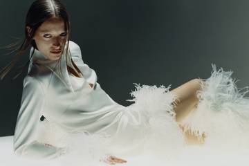 The inaugural 20-piece 16Arlington Bridal collection aims to reinterpret the notion of bridal with its “signature escapist” aesthetic with wedding dresses and separates featuring feathers, iridescent sequins, and tailoring.
