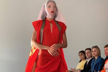 Delicately dramatic throughout, the show’s finale was a bride dressed in a froth of blush tulle who glided slowly down the runway extracting pins from her head as blood trickled down her forehead onto her veil. It recalled Christian imagery while also reminding us of the dangers of existing in society as a trans person, often the target of bigotry that comes from religious fervor.