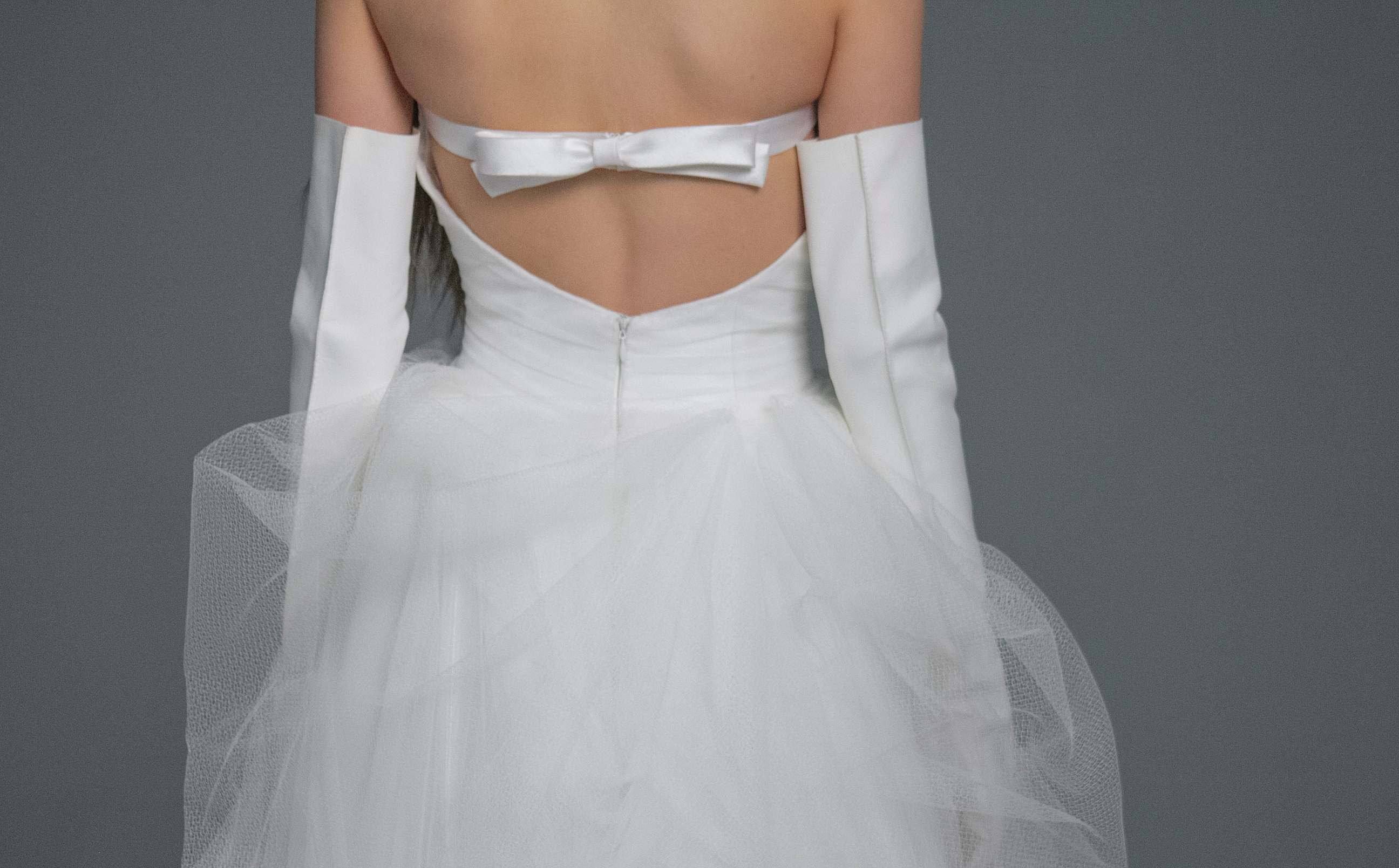 On what brides-to-be can expect from the Vera Wang Bride line, Pronovias shared at the online press event that the collection would be characterised by the designers “innovative and iconic designs”. Taking inspiration from Wang’s archive, as well as incorporating the brand’s codes such as the way the backs are draped, and her use of “luxurious fabrics and materials, and hand crafted finishes”.