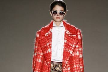 Her latest collection featured her trademark skirts with their small waists and billowing fullness over the hips, but matched them with masculine woollen coats, jumpers and mid-calf socks -- these adorned with tassels and worn with flats.