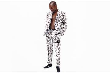 The collection features a recurring eyeball motif, and aesthetic inspiration taken from Stephen J. Shanabrook and Veronika Georgieva's 2010 ads for Comme des Garçons Shirt. The line includes t-shirts, hoodies, a parka, three-piece gabardine suits, wallets and coin purses.