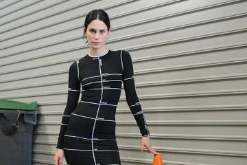 While the Vetements by Wolford black and white maxi dress features lines inspired by the measurements used in high fashion redefining the contours of the body. The dress has been designed to be worn as a single piece or combined with other garments, explained Wolford with the aim of highlighting “individuality and personal style”.
